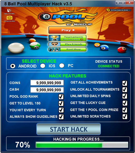Hack 8 ball pool is an app developed by miniclip that helps you get unlimited cash and coins to your miniclip 8 ball pool game. We also have a free version, if you don't to buy the hack if you can use it as you want. Follow me on facebook if you want more updates for hacks. I can't say it full antiban. Use our latest hack for 8 ball pool. Download & install adobe flashplayer, mozilla firefox & cheat engine (links below). 8 ball pool hack 100% without roor and jailbreak. 8 ball pool guide line. Includes the pros and cons what it can do. Add unlimited coins and cash to your account. Get free packages of coins (stash, heap, vault), spin pack and power packs with 8 ball pool online generator. This game is ruling the gaming world. These cheats will give you added money and.